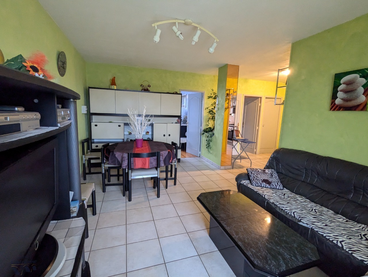 A découvrir sans tarder appartement au 1er étage offrant 64 m² et comprenant un vaste hall d’entrée desservant une cuisine équipée fonctionnelle – un séjour salon donnant sur balcon fermé , 2 chambres avec parquet , une grande salle d’eau avec douche et cellier fermé, toilette indépendante.