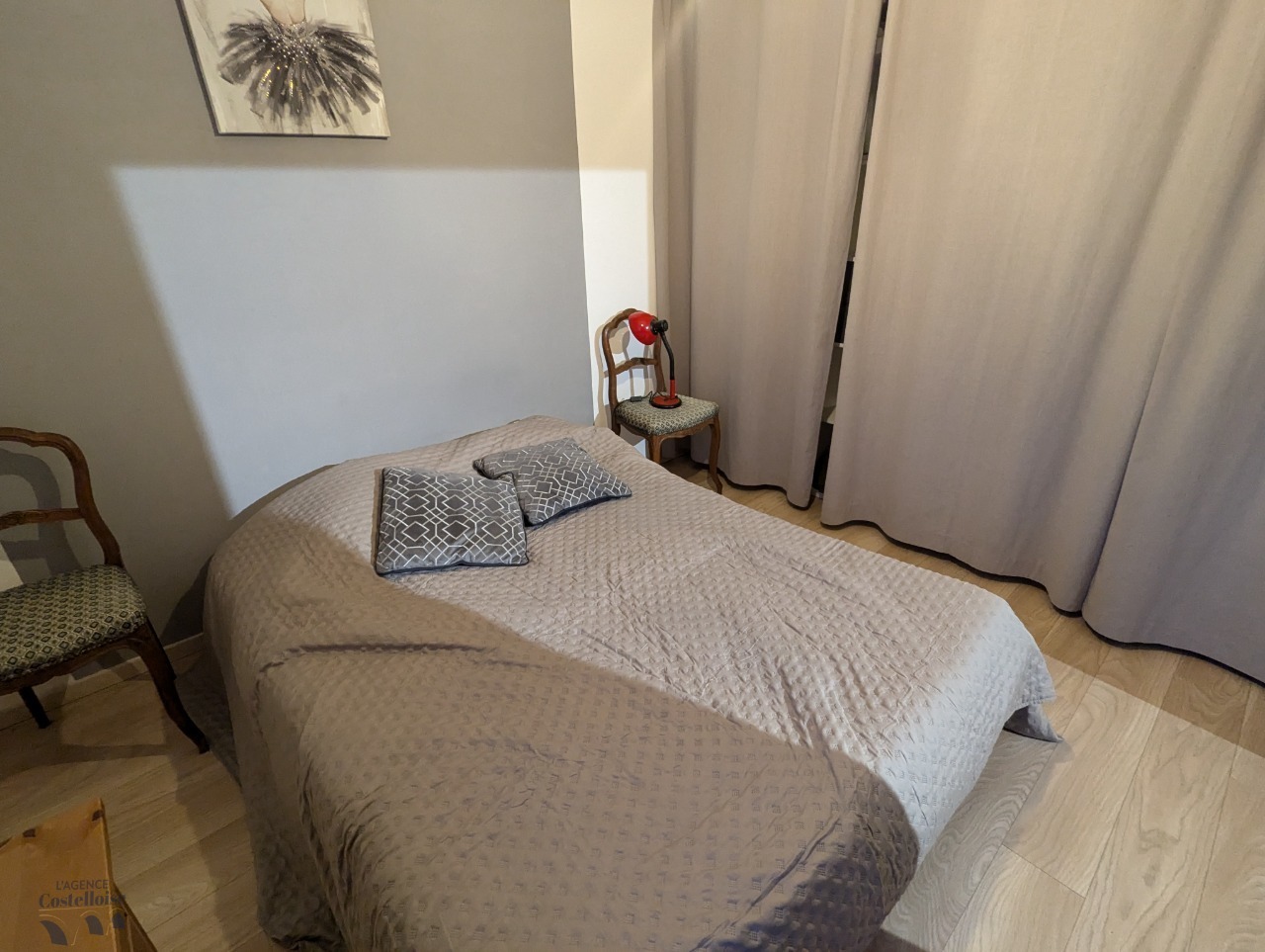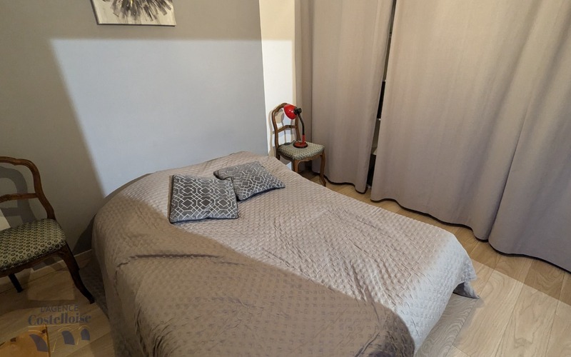 Une entrée desservant un placard de rangement, cuisine équipée donnant sur terrasse , un séjour salon climatisé donnant sur terrasse , 2 belles chambres avec parquet et rangements muraux .
