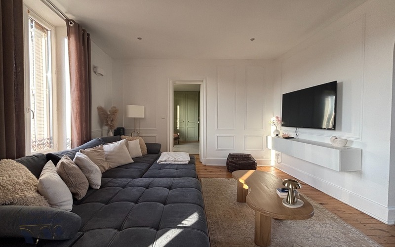 Grand salon séjour double de 32 m² très lumineux exposé plein sud/ouest.