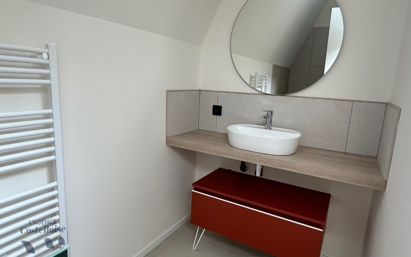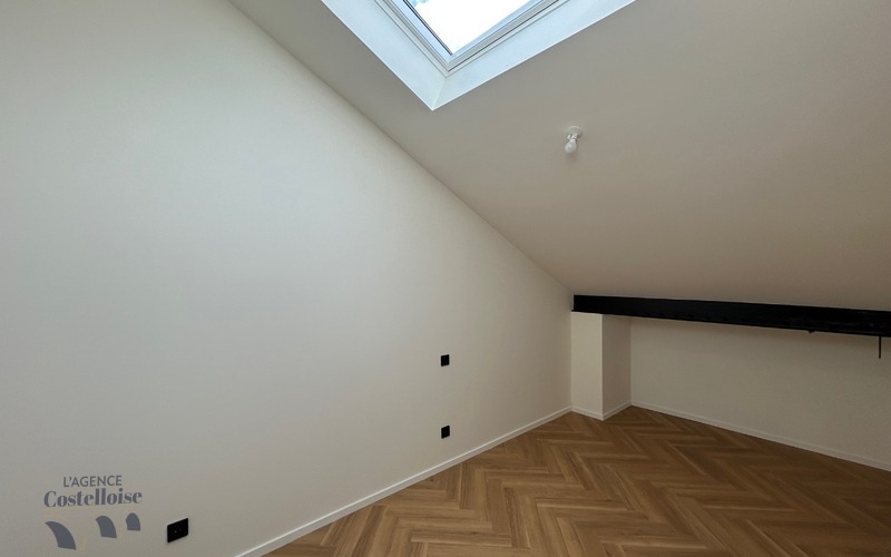 À l’étage, un espace intimiste accueille une seconde suite, parfaite pour recevoir ou préserver la tranquillité de chacun, dotée également de sa propre salle d’eau avec douche italienne