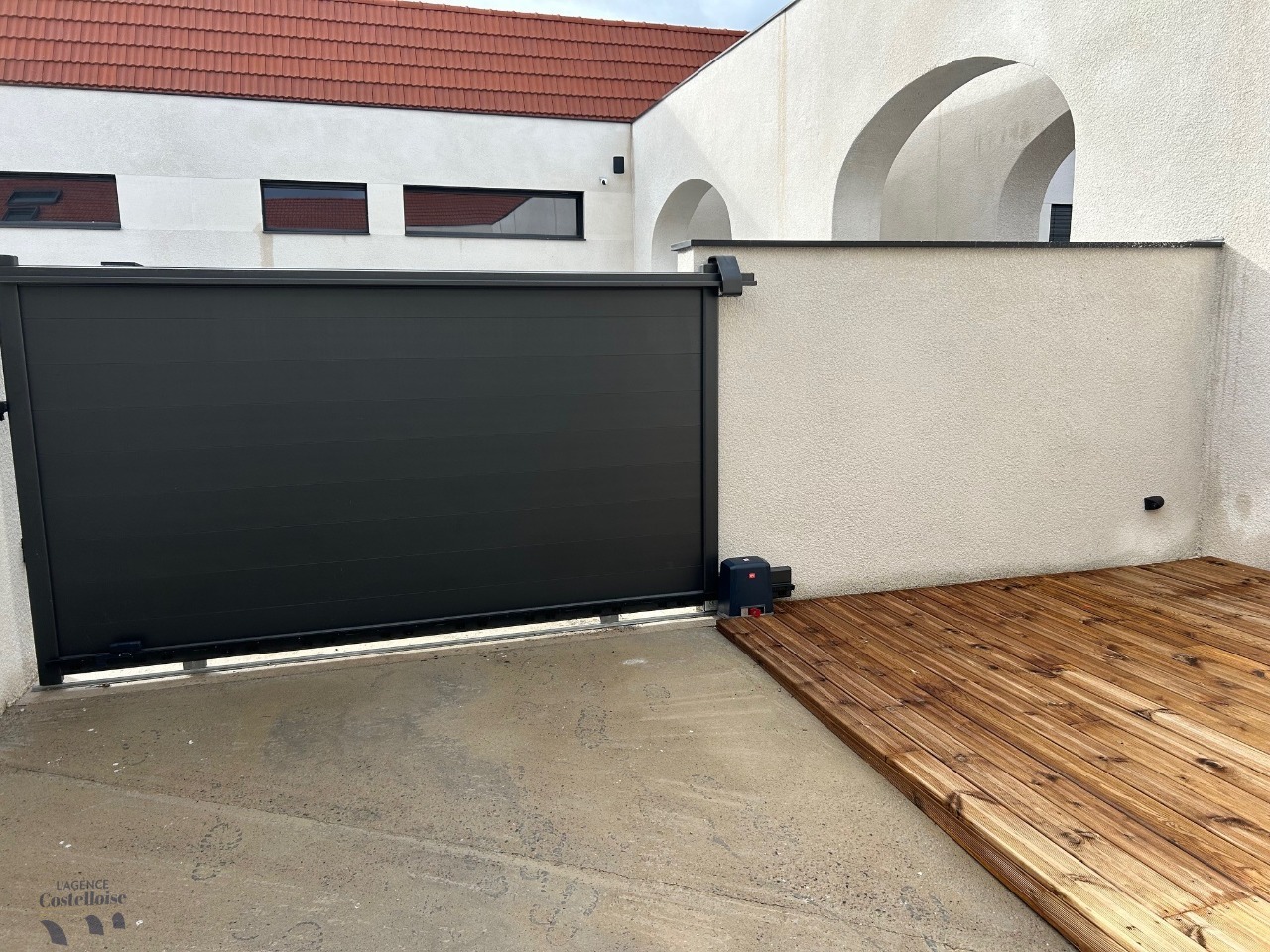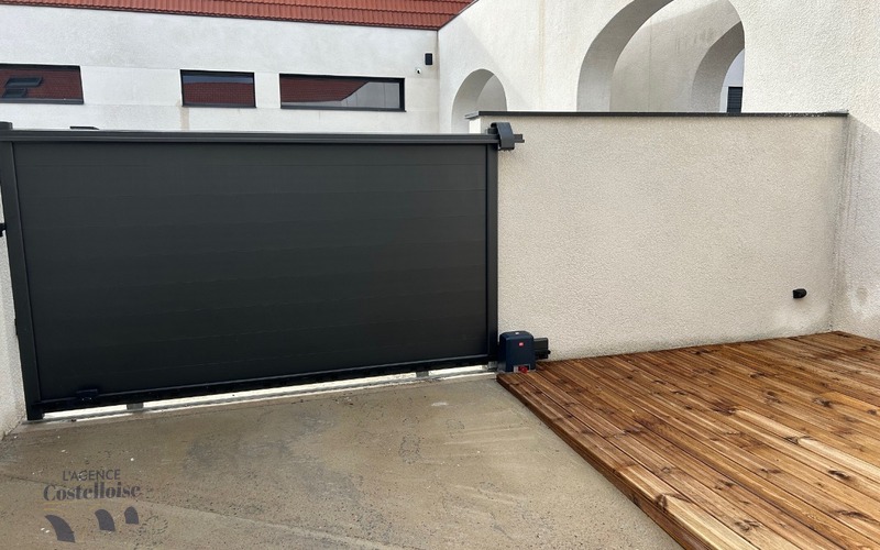 Un stationnement privé avec portail électrique assure confort et sécurité au quotidien.
