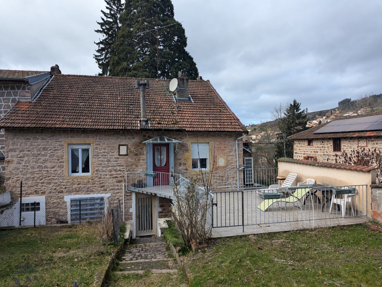 Maison de construction pierres comprenant au rez de chaussée un garage , cave , buanderie .