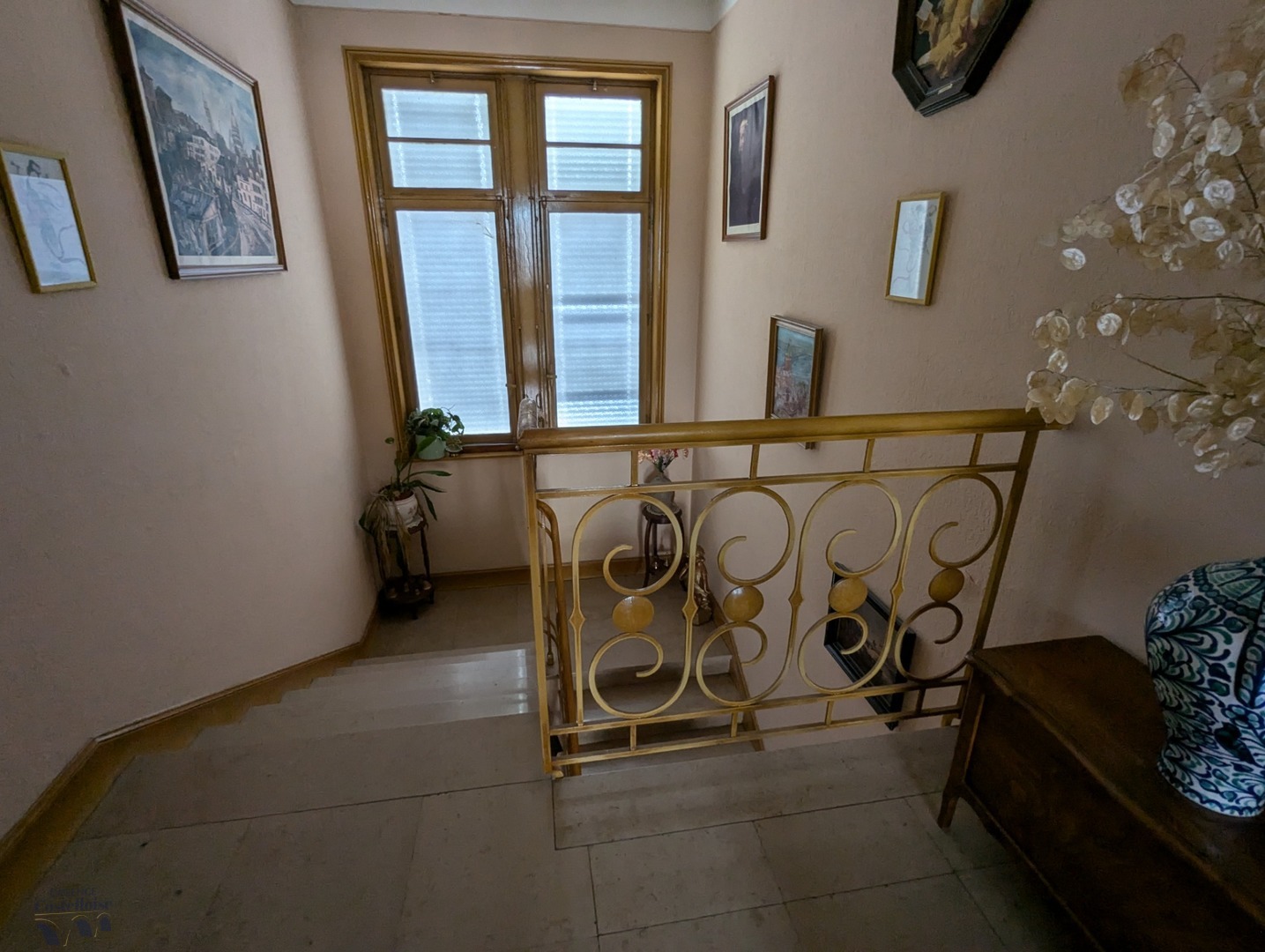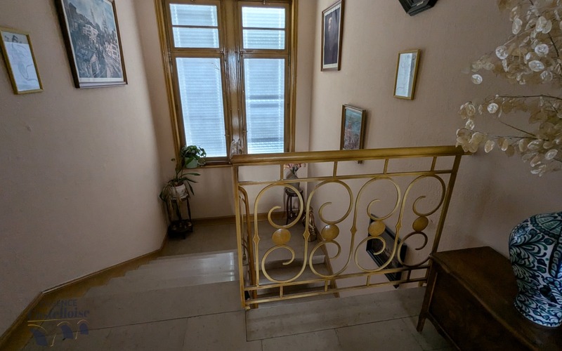Un bel escalier intérieur en travertin accompagné de sa rampe Art déco vous amènera au 1 er étage offrant une cuisine familiale, un double séjour salon avec parquets. 3 spacieuses chambres, salle de bain, nombreux rangements.