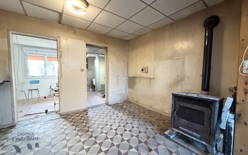 Elle se compose d'une cuisine, un séjour-salon avec poêle à bois, une salle d’eau avec wc, une chambre, un cellier.