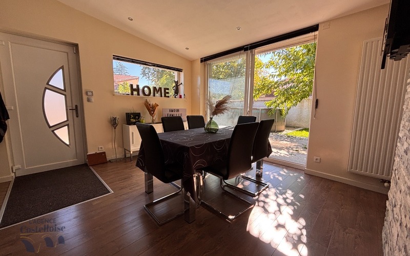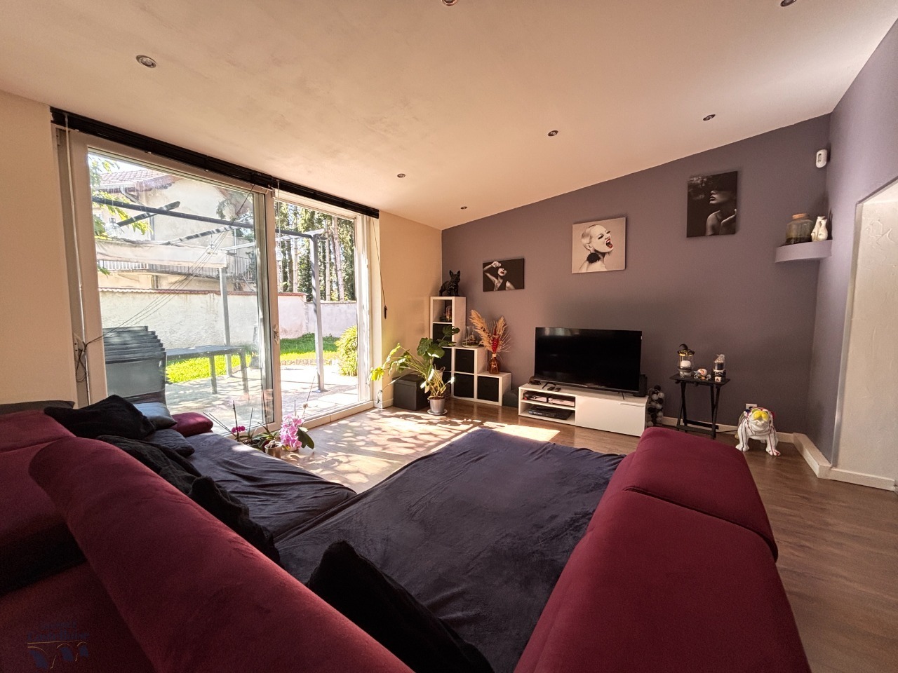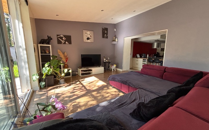 -Grande pièce de vie traversante et lumineuse avec accès direct sur le jardin grâce à de larges baies vitrées.