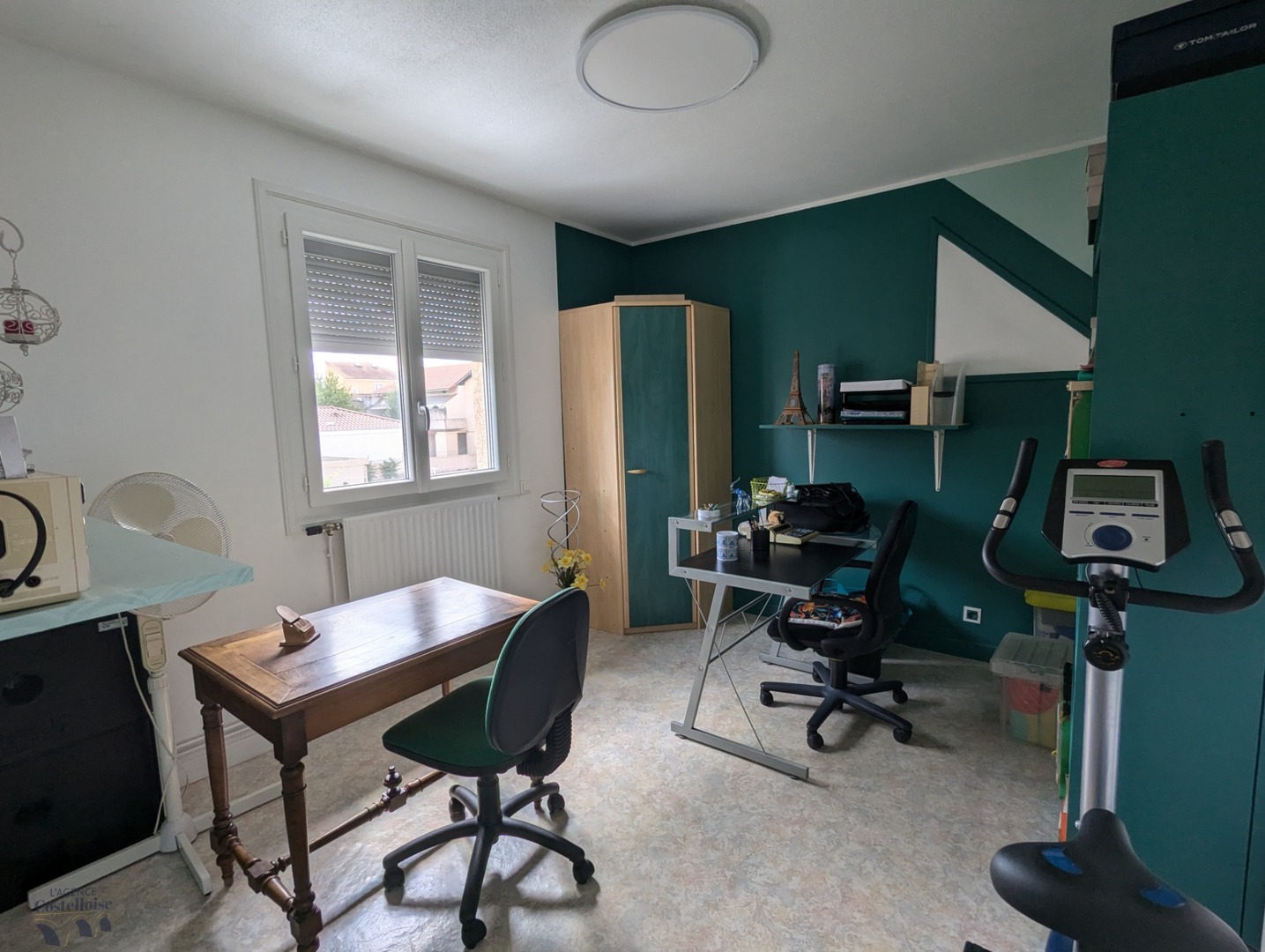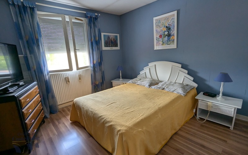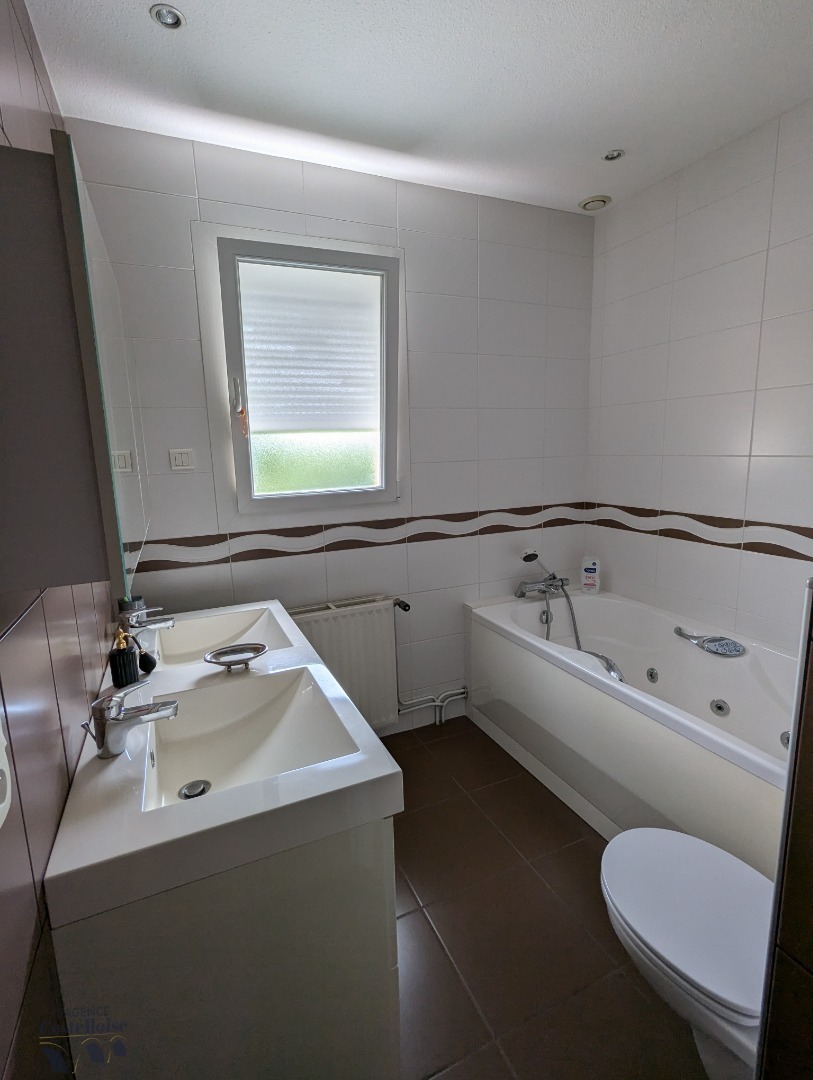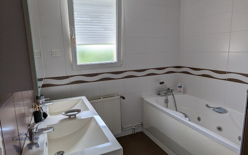A l’étage un hall desservant 3 chambres, salle de bains avec baignoire balnéo.
