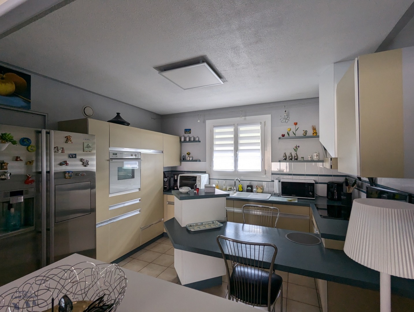 Au rez de chaussée, une cuisine équipée ouverte sur séjour salon donnant sur une véranda de 20 m² et piscine de 7.5/3.5 au sel, sans aucun vis-à-vis pour profiter des beaux jours en toute tranquillité.